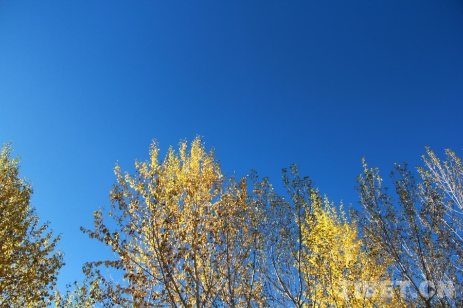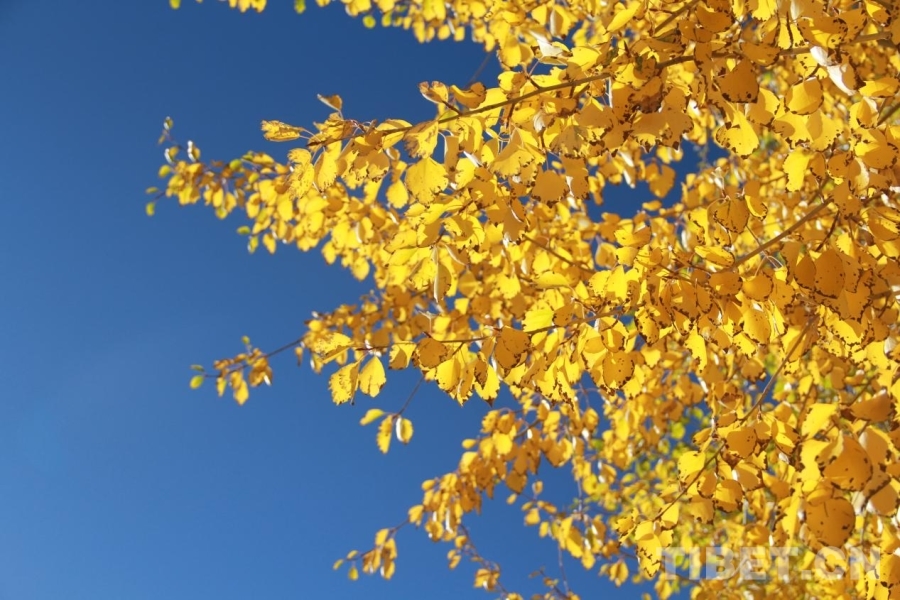 圖為阿里獅泉河鎮(zhèn),秋葉與藍(lán)天  攝影:趙釗