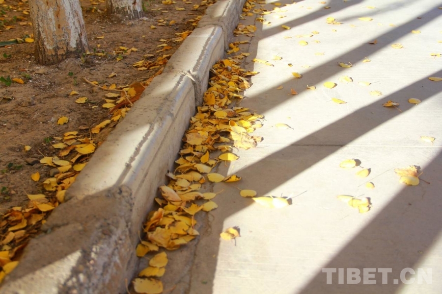 圖為阿里獅泉河鎮(zhèn),落葉滿地 攝影:趙釗