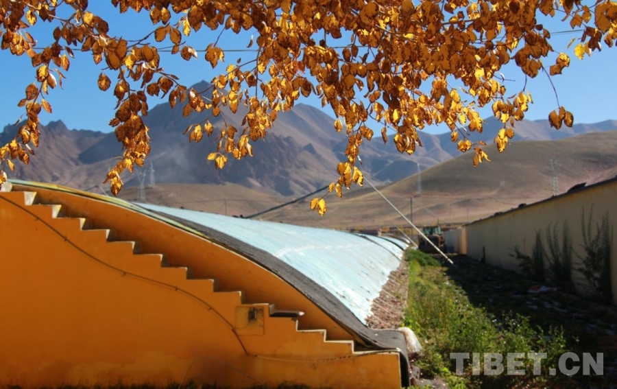 圖為阿里獅泉河鎮(zhèn)噶爾縣生態(tài)農(nóng)業(yè)產(chǎn)業(yè)園內(nèi),大棚上的秋葉  攝影:趙釗