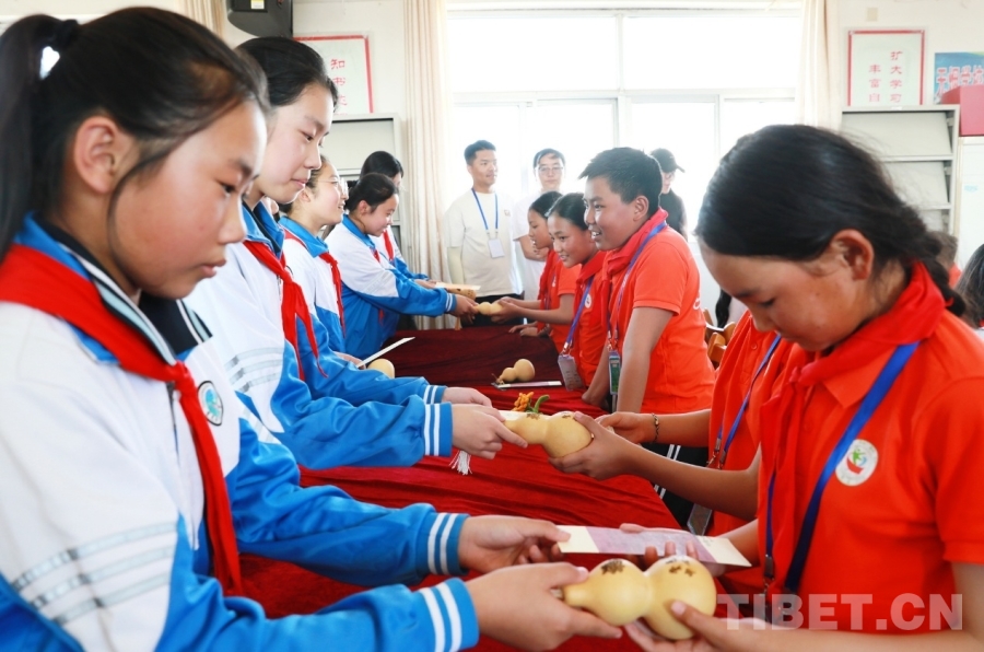 圖為堂邑鎮(zhèn)中心小學(xué)學(xué)生向西藏阿里噶爾縣孔繁森小學(xué)學(xué)生贈(zèng)送小禮物 攝影:劉莉