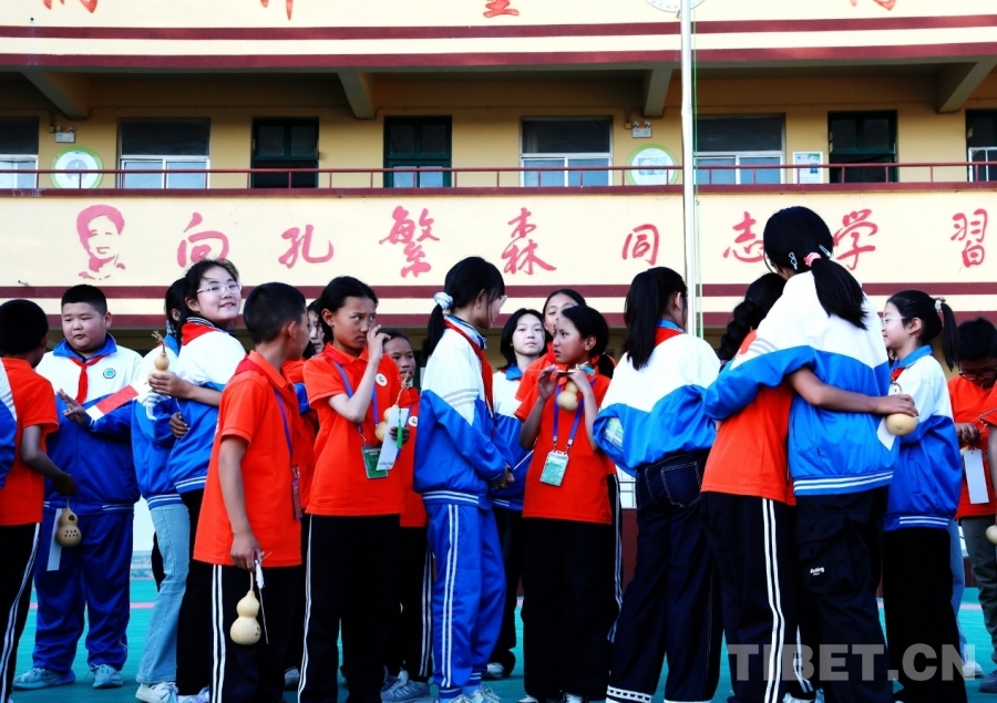 9月25日,西藏自治區(qū)阿里噶爾縣孔繁森小學(xué)的師生來到位于山東省聊城市的堂邑鎮(zhèn)中心小學(xué)開展聯(lián)誼活動(dòng)。兩所學(xué)校的孩子們手拉手合唱了中國少年先鋒隊(duì)隊(duì)歌《我們是共產(chǎn)主義接班人》。孩子們自信嘹亮、清脆有力的歌聲回蕩在陽光燦爛的校園里。