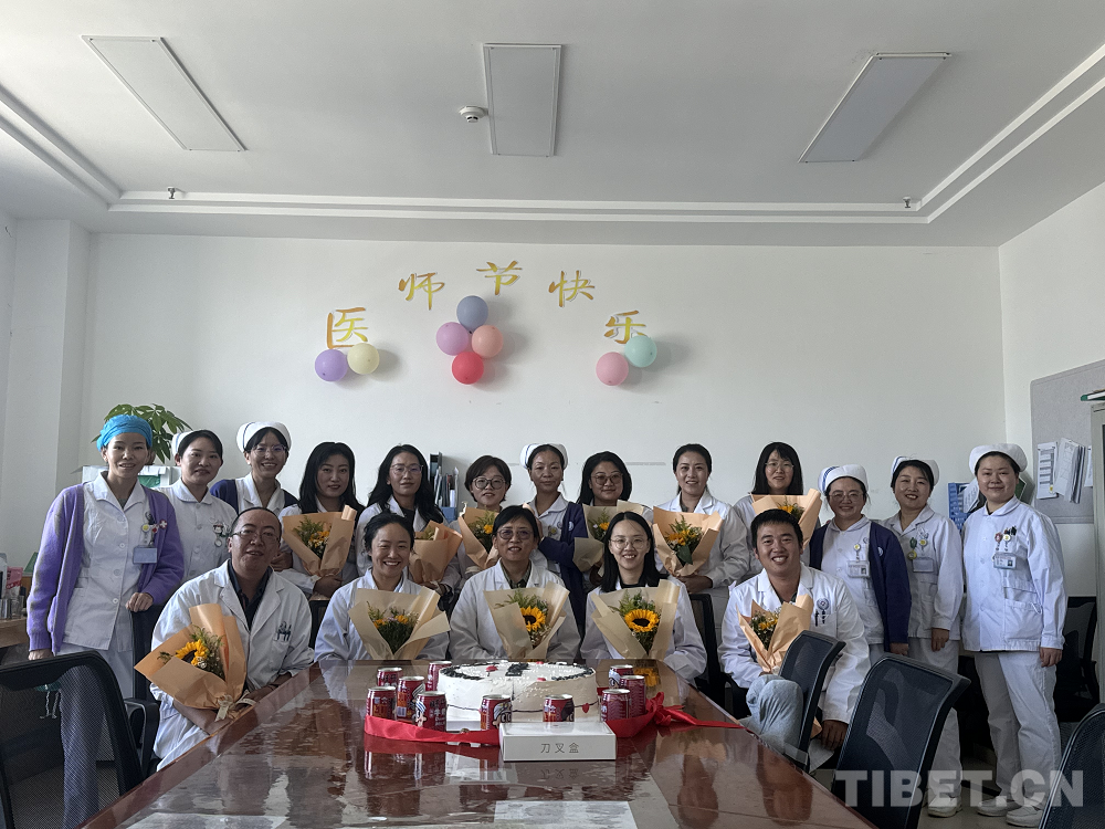 圖為馬玉超在西藏自治區(qū)人民醫(yī)院慶祝醫(yī)師節(jié)