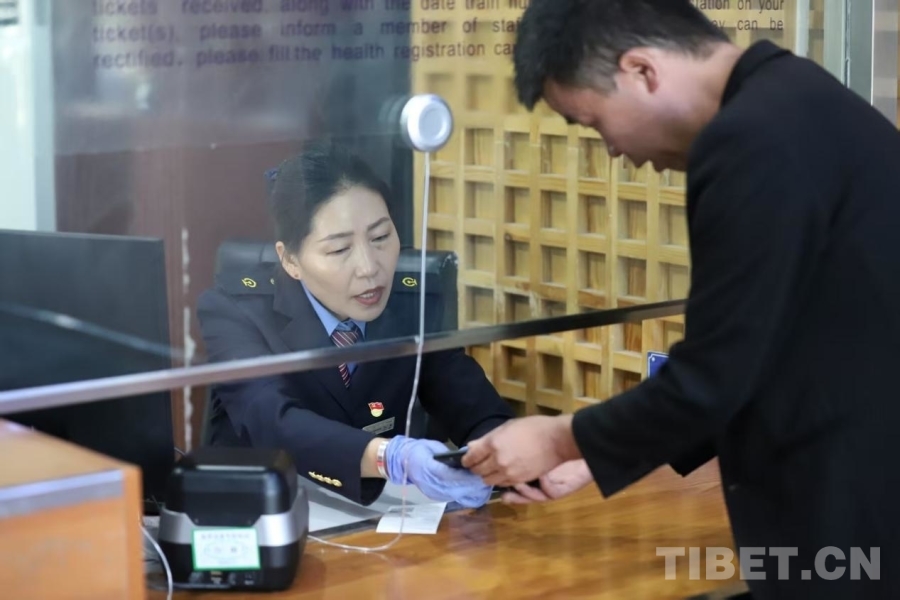 中國西藏網(wǎng)訊 國慶中秋假期將至,在這舉國歡慶、萬家團(tuán)圓時(shí)刻,拉薩火車站的職工們,也如往常一樣,默默地堅(jiān)守在自己的崗位上,確保每一位旅客都能安全、順利地抵達(dá)目的地。在忙碌的客流中,有一位身著藏藍(lán)色制服、胸前黨徽熠熠生輝的藏族女售票員,名叫扎桑。自2013年調(diào)入車站以來,扎桑已在售票崗位上默默堅(jiān)守十二年。她始終把“服務(wù)旅客、奉獻(xiàn)社會(huì)”作為初心使命,把“黨員”二字刻在心上,用專業(yè)與溫情,守護(hù)著雪域高原面向全國的“第一窗口”。