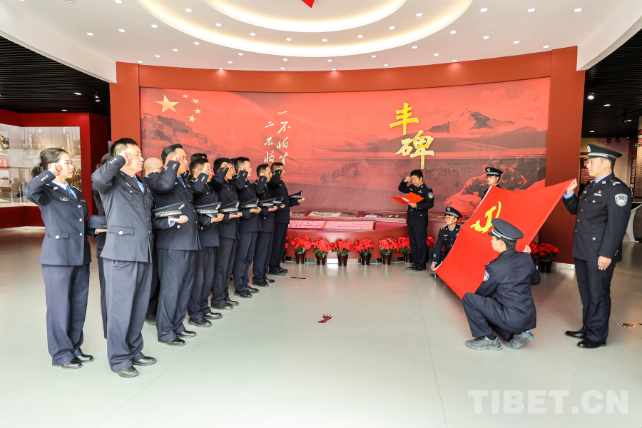 隨后,在領誓人的帶領下,全體黨員民警高舉右拳,重溫入黨誓詞:“我志愿加入中國共產黨,擁護黨的綱領……”鏗鏘有力的誓言回蕩在拉薩烈士陵園上空。(中國西藏網 通訊員/黃飛)