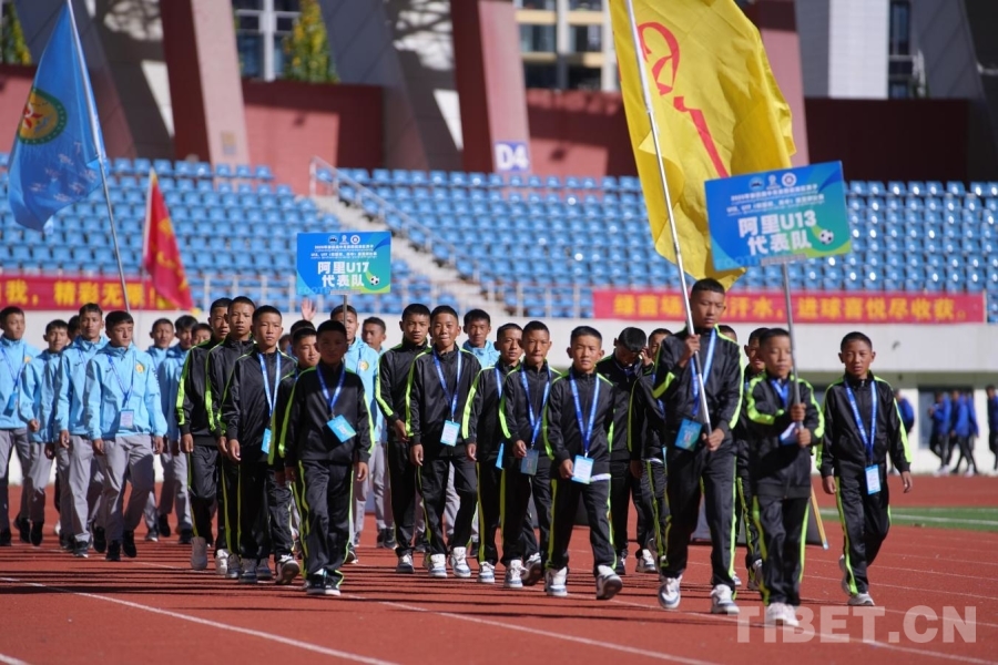 圖為西藏阿里U13、U17代表隊(duì)入場(chǎng)