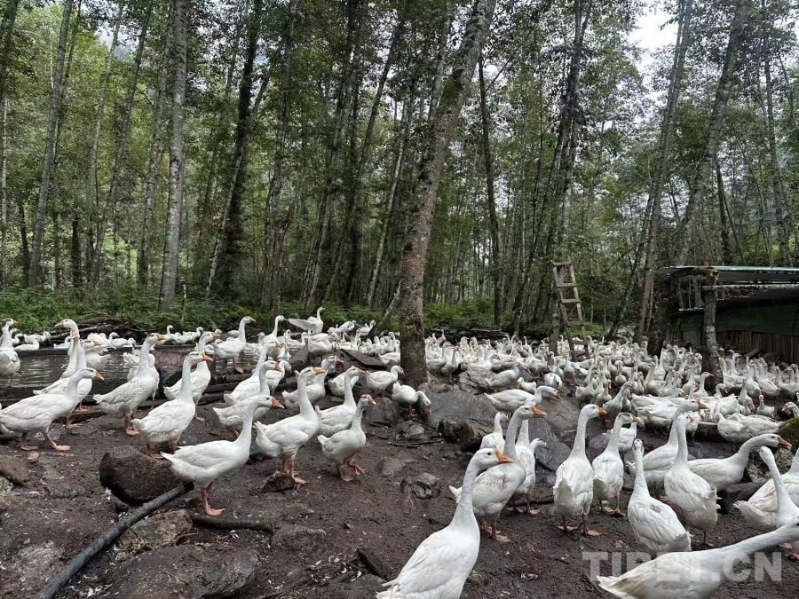 圖為上察隅鎮(zhèn)珠聯(lián)村的大白鵝養(yǎng)殖基地 仁青旺姆供圖