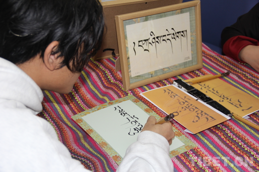 “用竹筆在藏紙上寫‘扎西德勒’的時候,手一直在抖,但特別有意思?!币晃粎⑴c活動的同學笑著說,“感覺離西藏更近了?!?/p>
