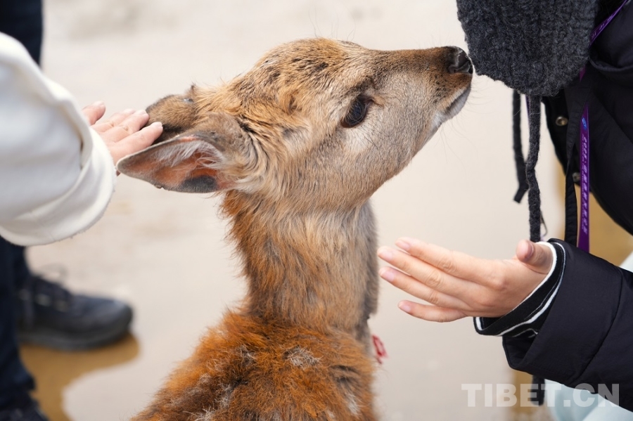圖為養(yǎng)殖場(chǎng)內(nèi)的網(wǎng)紅小鹿“次仁” 攝影:張藝彤