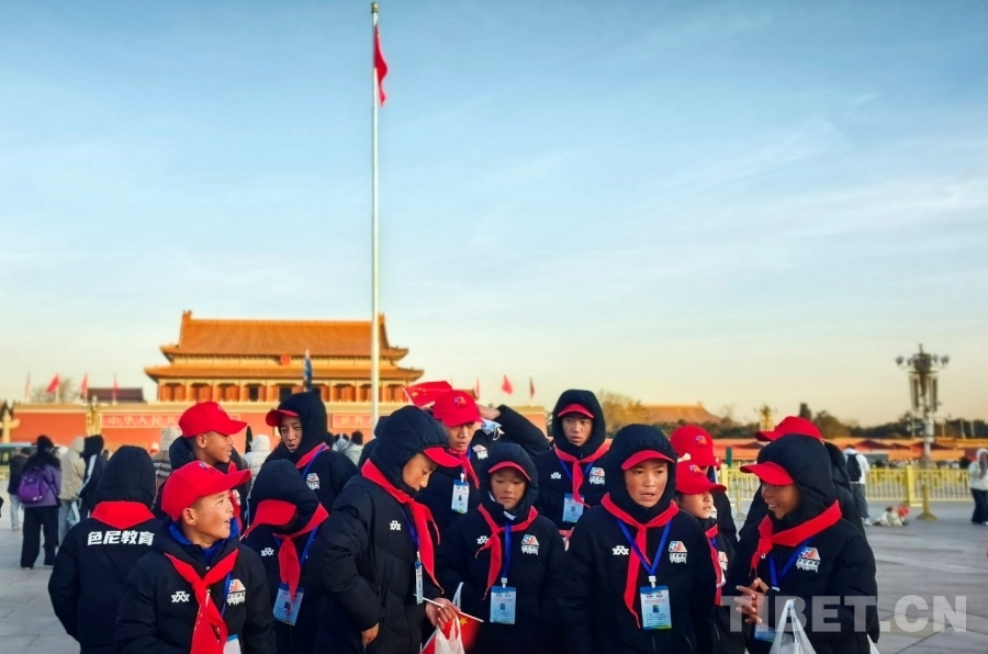 “祝祖國繁榮昌盛!扎西德勒!”12月26日清晨的天安門廣場,來自西藏自治區(qū)那曲市色尼區(qū)青少年足球隊(duì)的少年們在剛剛迎著朝陽升起的五星紅旗下,一起大聲為祖國送出衷心的祝福。
