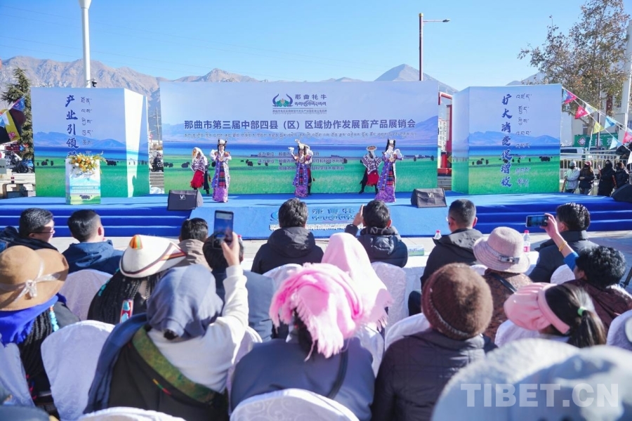 圖為那曲市第三屆中部四縣(區(qū))區(qū)域協(xié)作發(fā)展畜產(chǎn)品展銷會(huì)開幕現(xiàn)場(chǎng)