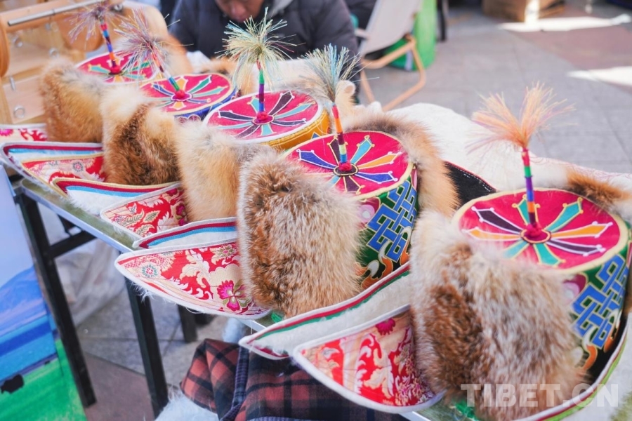 圖為展銷會(huì)擺放的那曲牧區(qū)藏帽