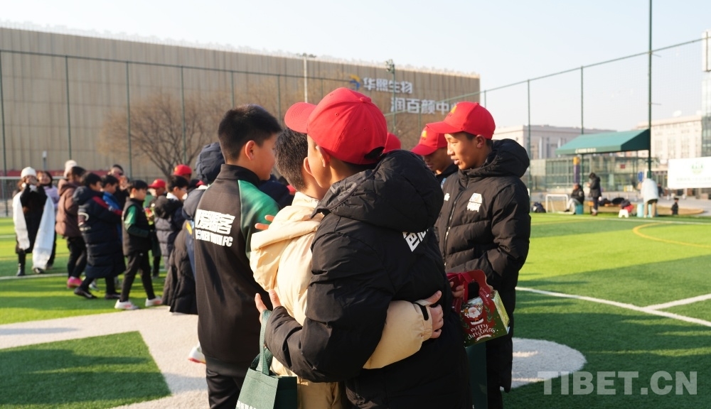 如果說賽場上的激烈競爭是全力以赴爭取勝利,那么,賽場下的互動就是友誼的開始,更顯溫情。當比賽結束,西藏足球少年們飛奔在場內歡呼勝利,北京小球員也與其擊掌致意。音樂響起,熱情洋溢的鍋莊在綠茵地上舞動,兩地青少年互贈禮物,擁抱在一起互贊“好球”。北京的小球員郭笑先真誠地說:“雖然我們輸了比賽,有些失落,但我們也從中學到了很多。我覺得你們的拼搏精神非常值得學習。下次有機會,我一定去西藏再賽一場。也想看看你們美麗的家鄉(xiāng)是什么樣的?!?nbsp;