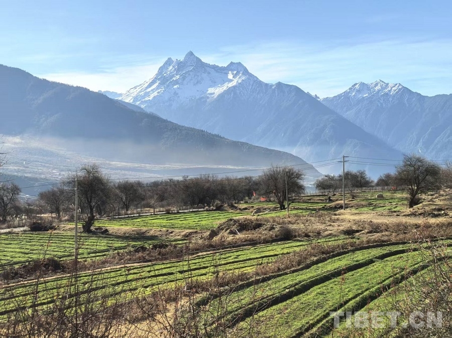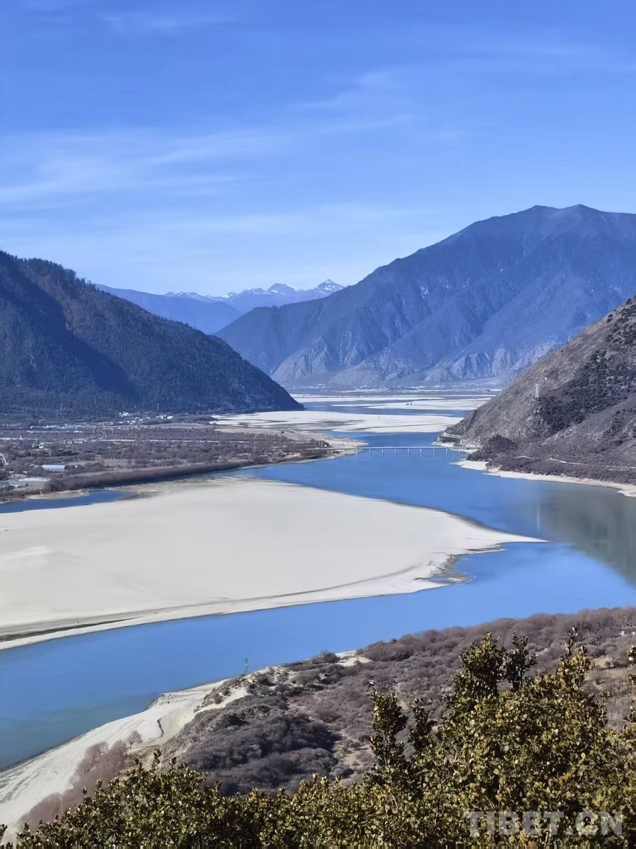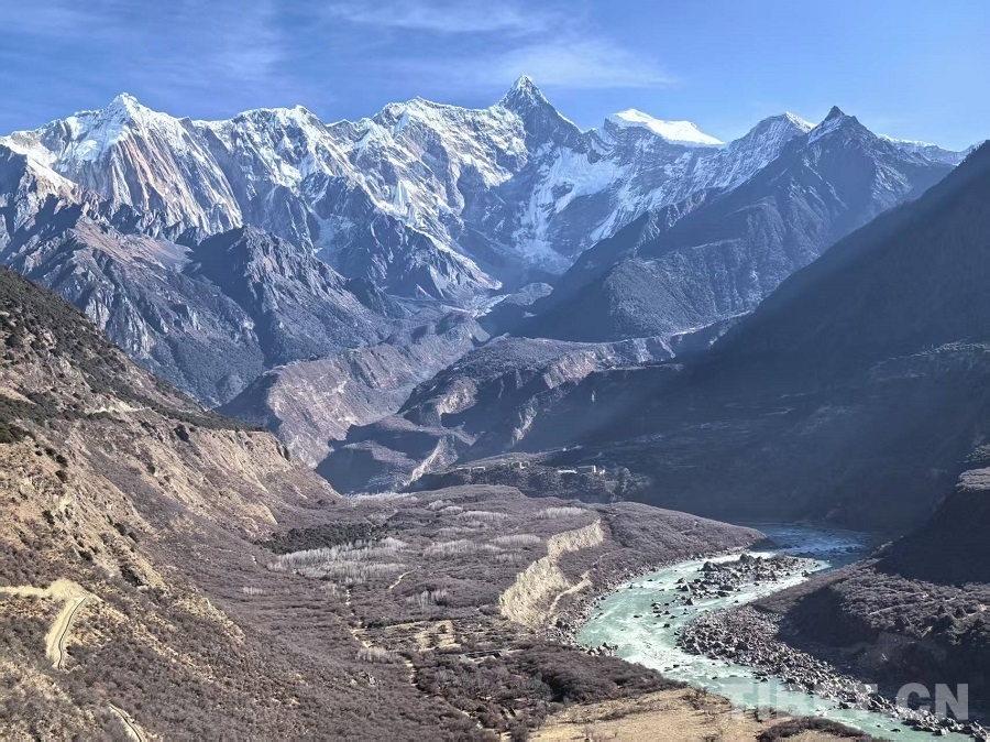冬日,雅魯藏布大峽谷靜默如詩(shī)。江水凝為碧藍(lán)玉帶,蜿蜒穿行山間。驅(qū)車沿山路前行,掠過(guò)田舍與松林,驀然抬首,巍峨雪山撲面而來(lái)——陽(yáng)光璀璨,峰巔銀光灼灼,在蔚藍(lán)天空下愈顯玉潔冰清。