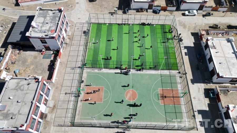 圖為定日縣長所鄉(xiāng)森嘎村的足球場和籃球場