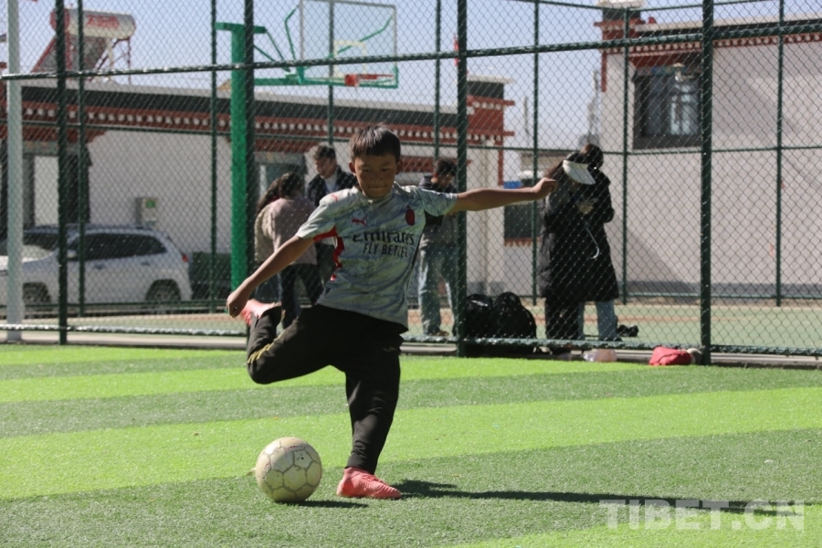 14歲的拉巴次仁是球場上的“常勝小將”。他皮膚黝黑,眼神明亮,帶球突破時(shí)步伐敏捷,射門時(shí)毫不猶豫?!拔业呐枷袷敲肺?,”他擦著汗說,“我希望將來也能像他一樣,在更大的球場上踢球?!毕窭痛稳蔬@樣懷揣足球夢的孩子,在長所鄉(xiāng)還有很多。他們?cè)诒寂苤袑?shí)實(shí)在在地感受著生活的重建與希望的生長。足球,不僅是一項(xiàng)運(yùn)動(dòng),更成了他們童年中一抹亮麗的色彩。