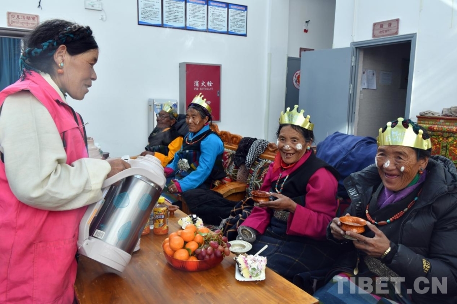 中國(guó)西藏網(wǎng)訊 冬日的暖陽透過玻璃窗,灑進(jìn)西藏日喀則定結(jié)縣郭加鄉(xiāng)切村幸福院。老人們圍坐在色彩絢麗的卡墊上,手捧甜茶,一同慶祝集體生日。溫暖的光線下,每張臉上,都洋溢著安寧而滿足的笑容。這座由村級(jí)閑置房屋改造而成的院落,如今已成為村里65位老人共同的“家”?! ?/p>