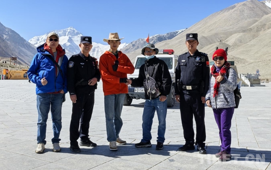 圖為珠峰邊境派出所民警為游客化解矛盾得到游客稱贊