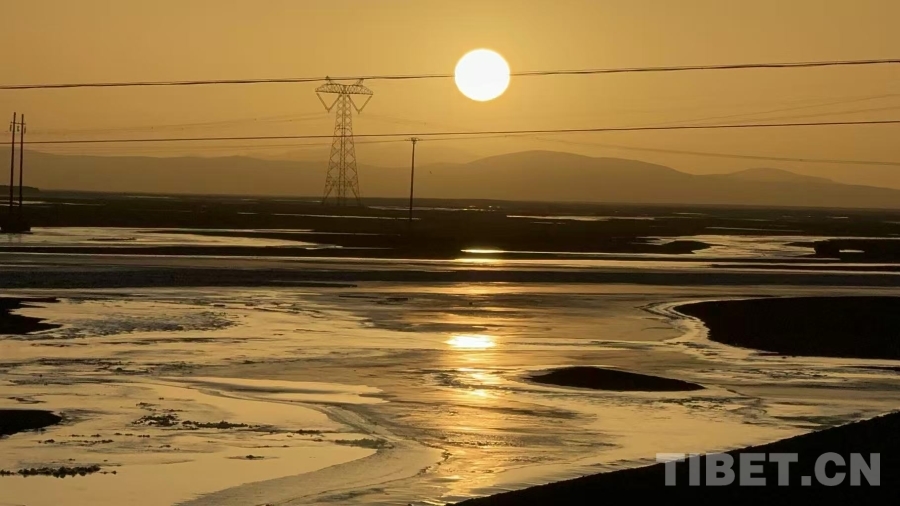 沱沱河上幾乎完全解了凍,破冰的河水于源頭寬闊的河床上奏響了熟悉的五線譜般的奏鳴。