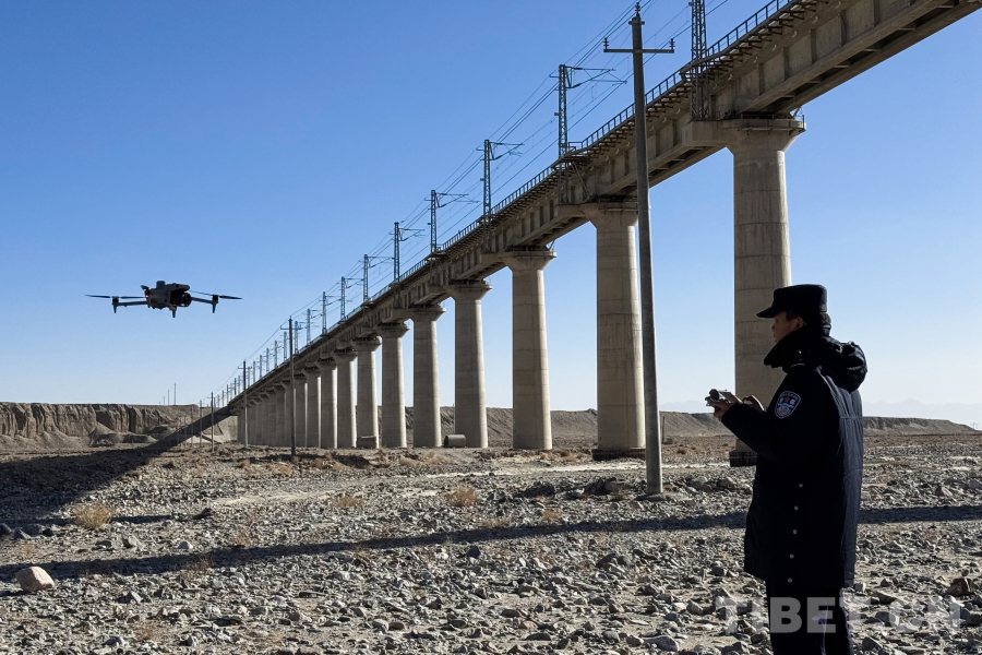 “所長,無人機觀察到前方700米處,防護網(wǎng)有破損情況!”2月2日上午8點,唐古拉山鎮(zhèn)氣溫降至零下18攝氏度,沱沱河站派出所巡線民警,頂著刺骨寒風(fēng),借助無人機警航技術(shù),仔細排查鐵路沿線防護網(wǎng)和橋梁涵洞設(shè)施設(shè)備。春運以來,格爾木鐵路公安處全面加強線路巡查力度,對重點部位開展全天候、全覆蓋式安全檢查,聯(lián)合鐵路各部門及時排除安全隱患,確保鋼鐵大動脈絕對暢通。