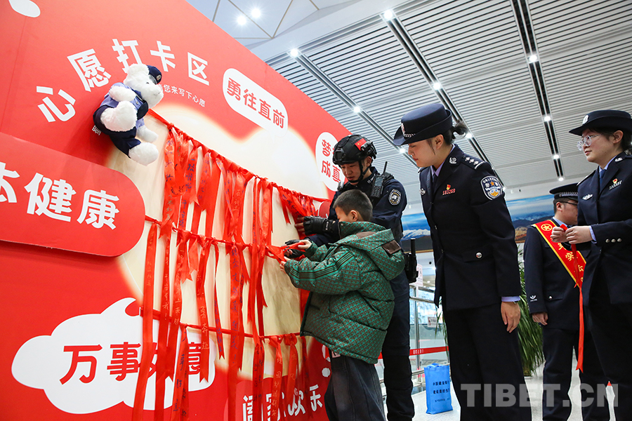 圖為春運期間,青藏鐵警在格爾木站候車廳開展情暖回家路活動