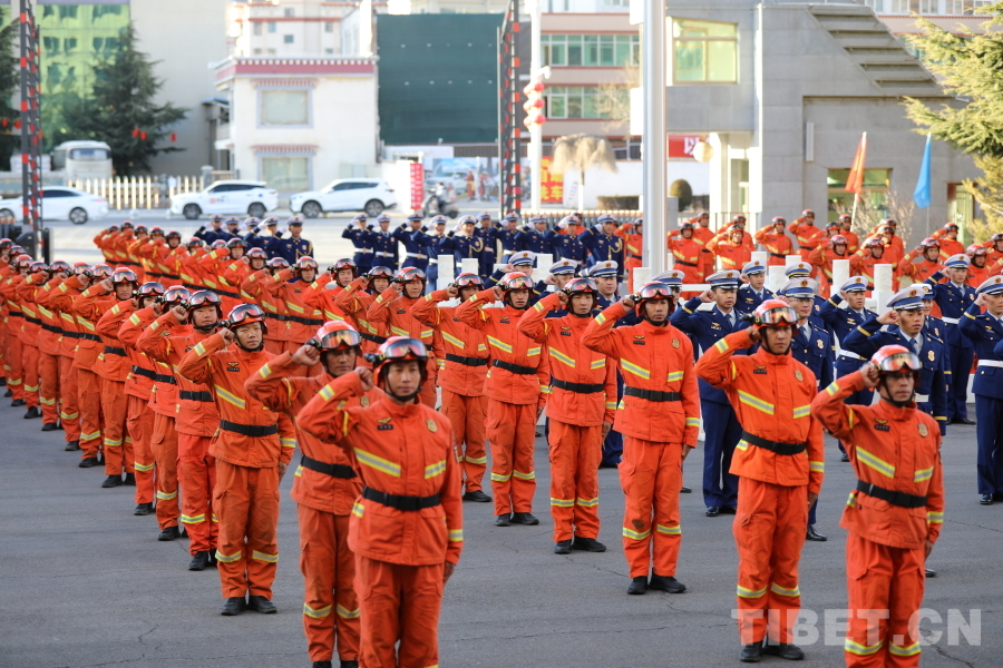 儀式在莊嚴(yán)的升國旗儀式中拉開序幕。雄壯的《義勇軍進(jìn)行曲》響徹高原,鮮艷的五星紅旗冉冉升起,全體參會(huì)人員肅立注目、神情莊重,向國旗致以崇高敬意。升旗儀式結(jié)束后,相關(guān)領(lǐng)導(dǎo)共同為“拉薩消防救援機(jī)動(dòng)支隊(duì)”揭牌,隨著紅綢緩緩落下,現(xiàn)場掌聲雷動(dòng),標(biāo)志著這支傳承高原火焰藍(lán)光榮傳統(tǒng)、肩負(fù)全新使命的救援機(jī)動(dòng)隊(duì)伍正式組建成立。