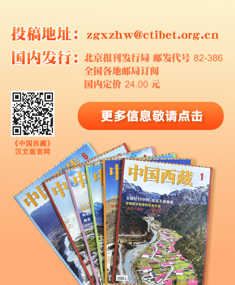 廣大讀者朋友們!過(guò)去一年我們雜志印發(fā)40余萬(wàn)冊(cè),在這個(gè)自媒體時(shí)代,我們歡迎大家空閑時(shí)放下手機(jī),相約精美文字,享受閱讀的快樂(lè)。您的關(guān)注與厚愛(ài),是我們穿越高原風(fēng)雪、堅(jiān)守傳播使命的不竭動(dòng)力。新的一年,我們將繼續(xù)以鏡頭捕捉高原之美,以文字傳播新時(shí)代之聲。本平臺(tái)長(zhǎng)期面向社會(huì)各界公開(kāi)征稿,誠(chéng)邀您的佳作。期待與您繼續(xù)相約《中國(guó)西藏》,共賞高原風(fēng)光,共話文明傳承,共赴美好未來(lái)!