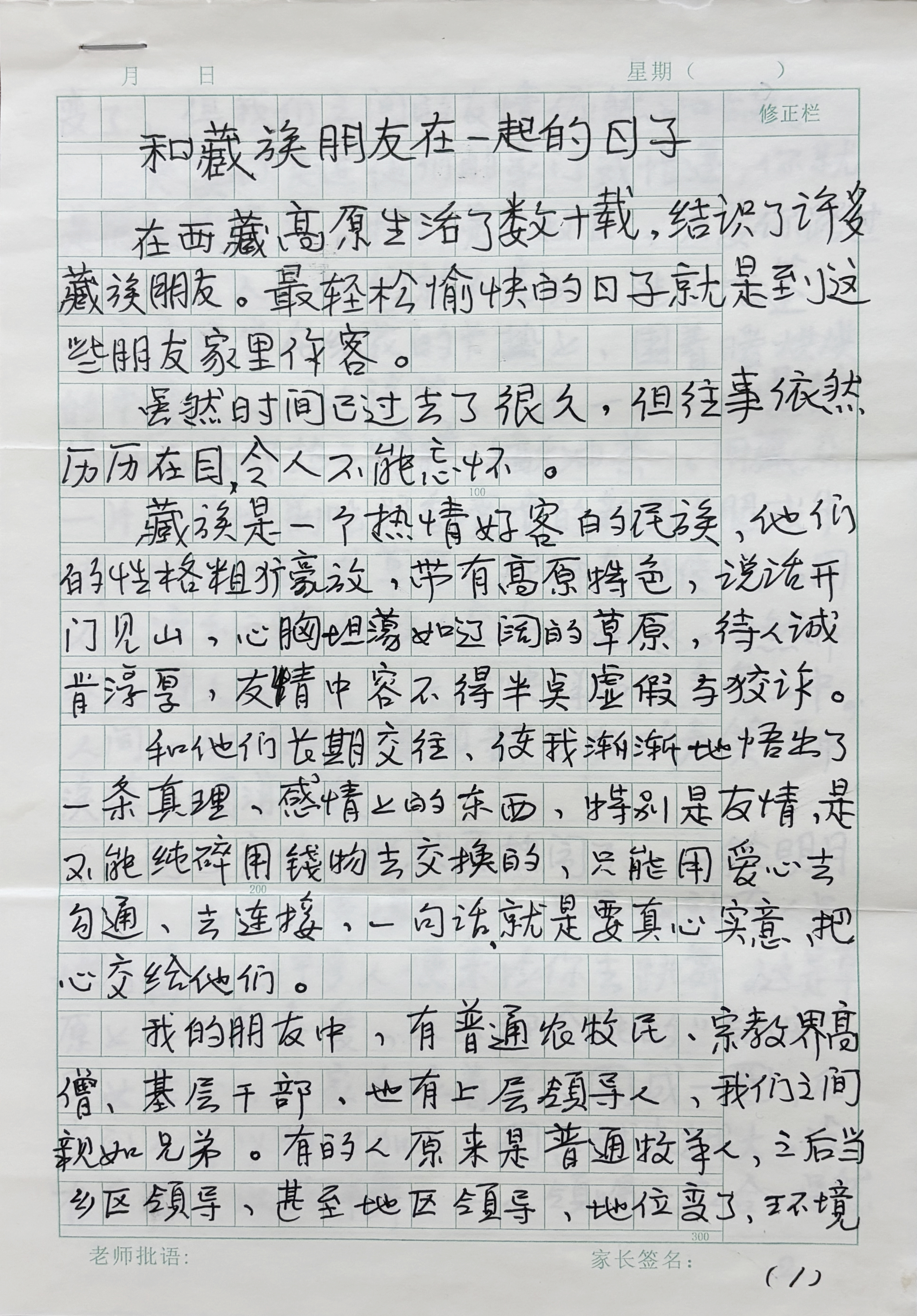 圖為讀者手寫(xiě)投稿文章《和藏族朋友在一起的日子》摘登