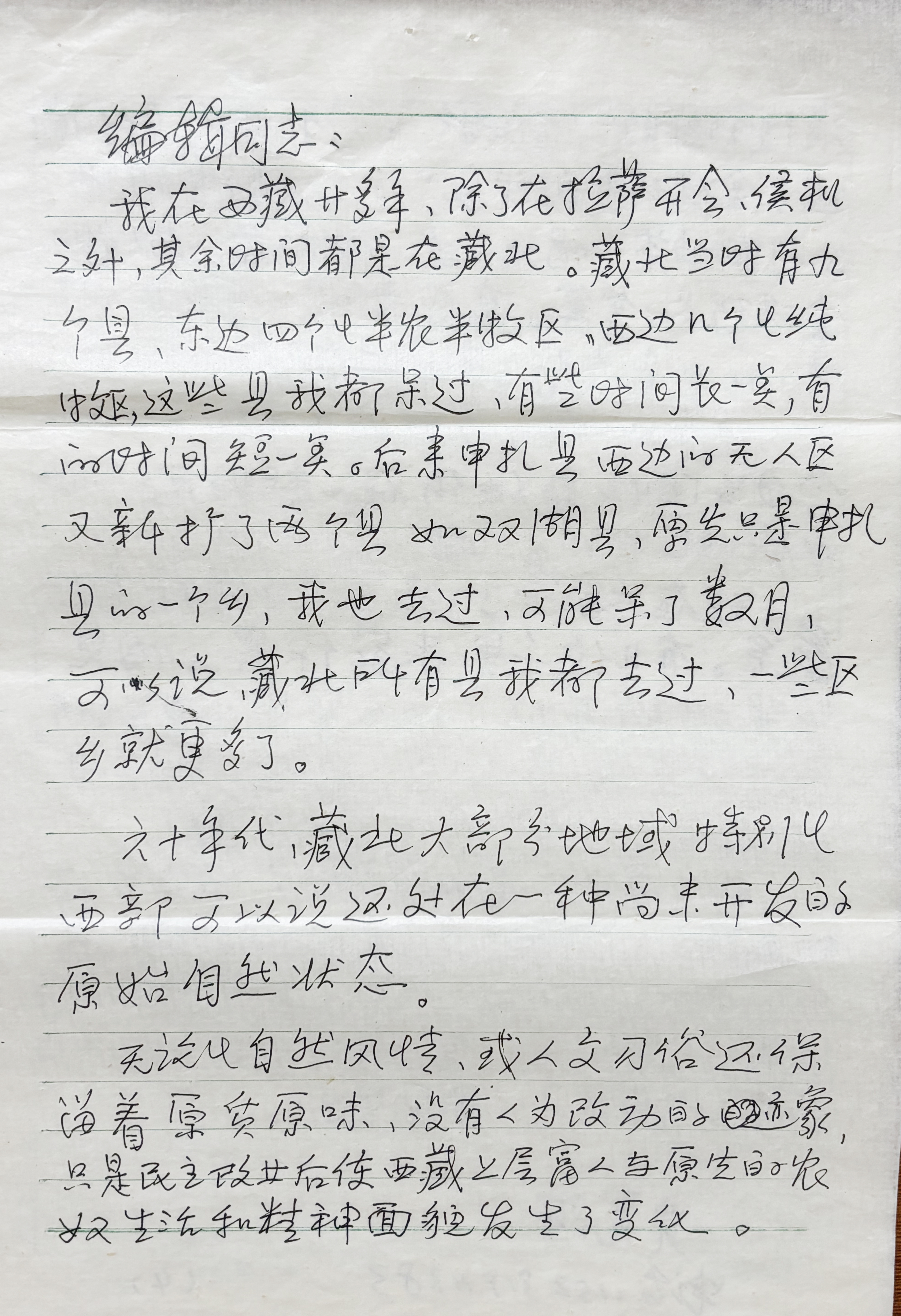 圖為讀者寫(xiě)給《中國(guó)西藏》漢文版雜志編輯的信