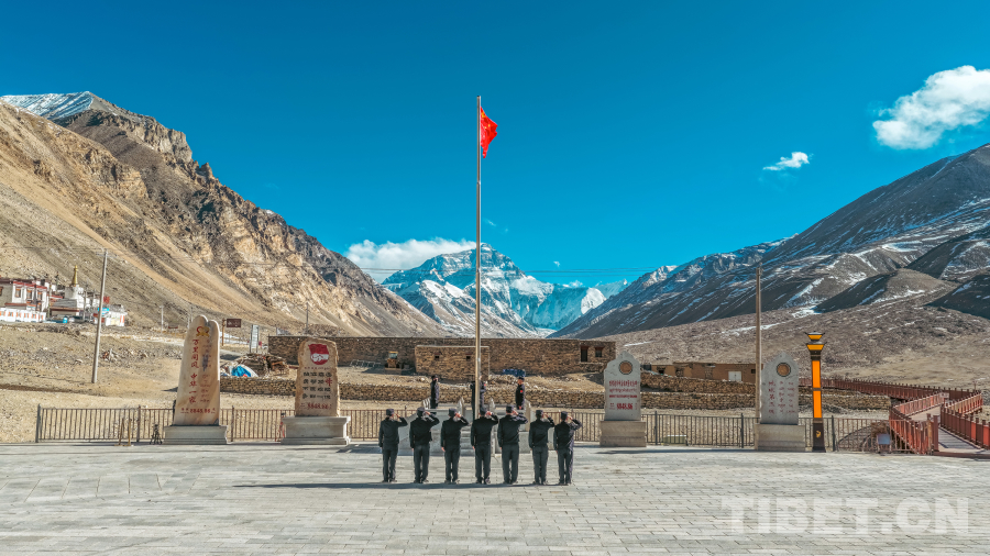 海拔5200米的珠峰大本營廣場上,西藏邊檢總站日喀則邊境管理支隊珠峰邊境派出所全體民警整齊列隊。高原的風(fēng)掠過雪山,揚(yáng)起深色制服的衣角。
