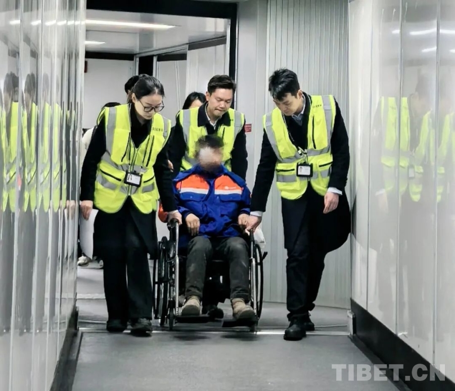 “邦錦梅朵”班組成員陪護(hù)行動不便旅客