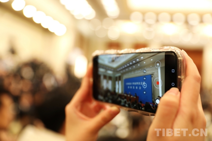 3月3日下午,全國政協(xié)十四屆四次會(huì)議新聞發(fā)布會(huì)現(xiàn)場,記者們使用手機(jī)及時(shí)發(fā)布信息。攝影:劉莉