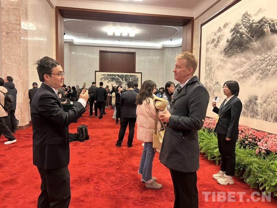 在人民大會堂,我采訪到美籍記者聶子瑞,這是他第九次報道兩會。當我還在糾結(jié)用英語還是中文采訪時,他已經(jīng)用地道的普通話和我聊起了去年在西藏林芝見面時的故事?!澳銓χ袊厣髧饨辉趺纯??”“你對西藏的印象如何?那邊的基礎(chǔ)設(shè)施建設(shè)、生態(tài)環(huán)境保護等方面是不是持續(xù)向好”,我問他的問題一個比一個深入,他的回答卻一個比一個專業(yè)。