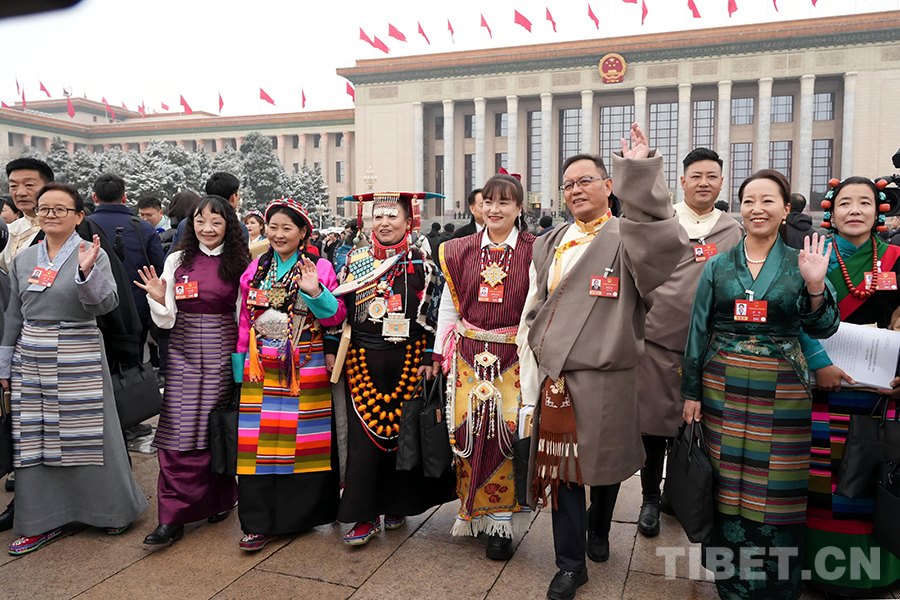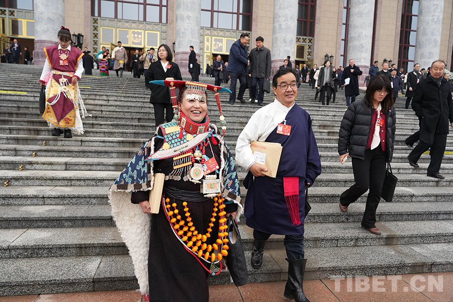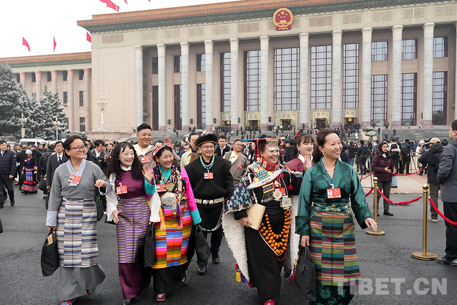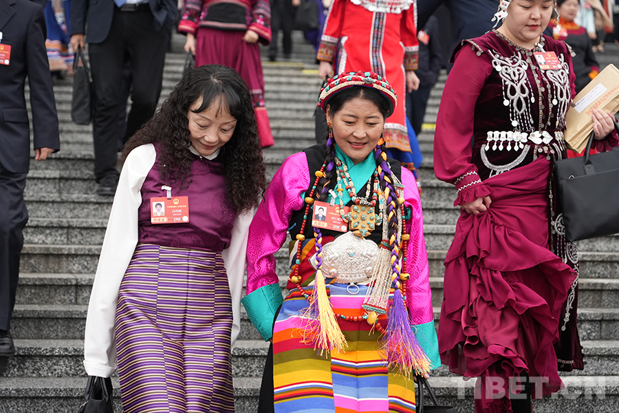 來(lái)自西藏自治區(qū)的全國(guó)人大代表走出會(huì)場(chǎng) 攝影:邊子捷