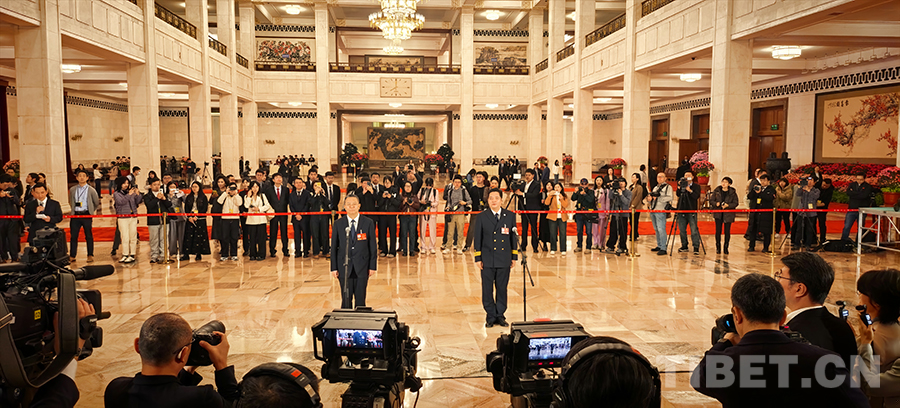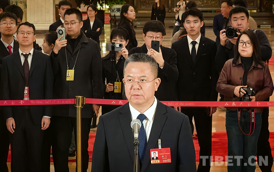 中國西藏網訊 3月9日,第十四屆全國人民代表大會第四次會議第二場“代表通道”集中采訪活動在人民大會堂舉行,邀請6名全國人大代表接受采訪。(中國西藏網 記者/劉莉 邊子捷 攝影報道)