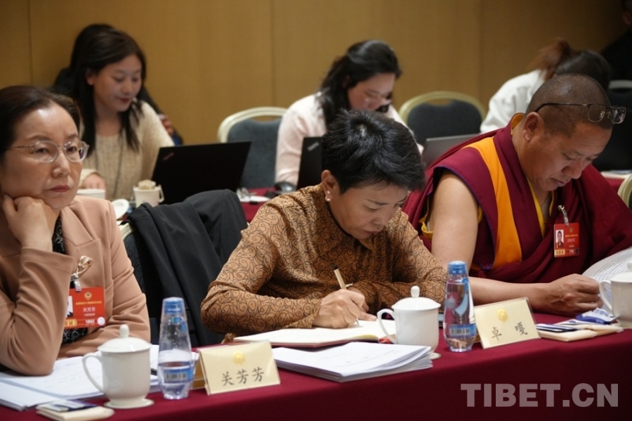 2026兩會期間卓嘎(前中)在少數(shù)民族界小組會議上 攝影:楊眉笑