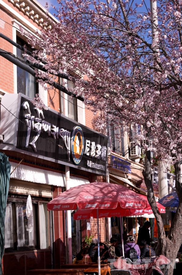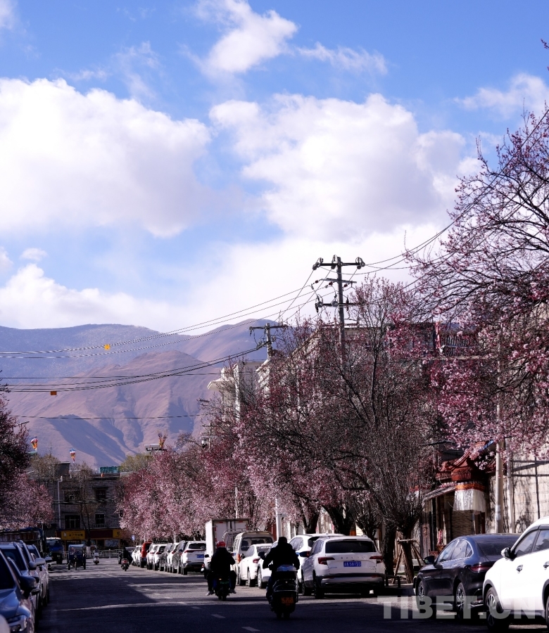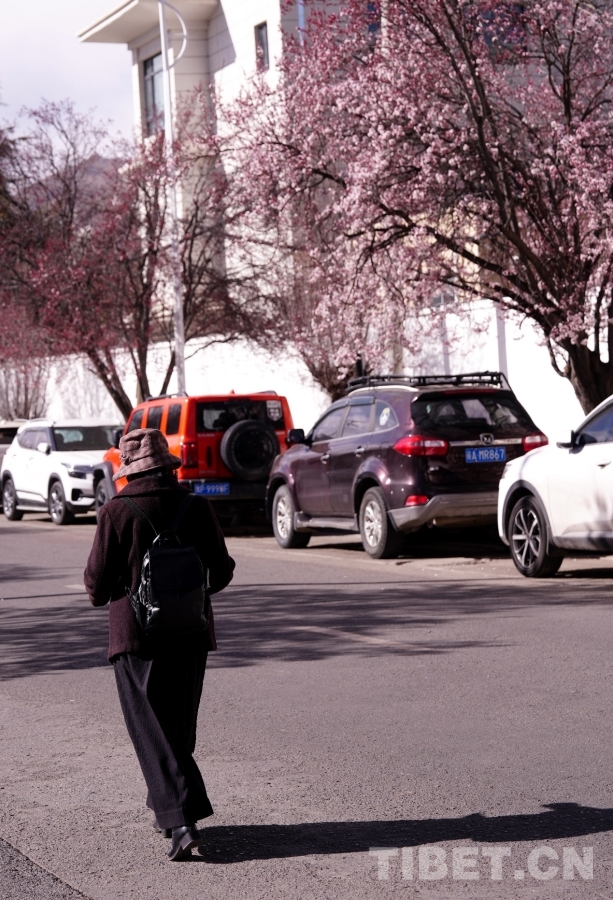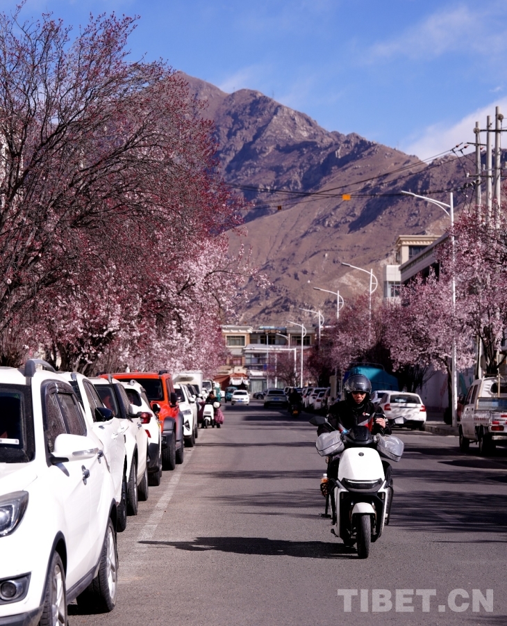 放眼望去,一樹(shù)樹(shù)春花爭(zhēng)相綻放,在春日的暖陽(yáng)下顯得格外耀眼奪目。在這條被春花裝扮一新的街道上,隨處可見(jiàn)市民悠然自得的身影——有人漫步行走在花間道路,沉醉于滿目春色;有人靜坐在茶館門(mén)外的桃花樹(shù)下,一邊品味甜茶的醇香,一邊享受春日的愜意時(shí)光?;ㄓ啊⑷擞芭c街景交相輝映,處處洋溢著春日拉薩的生機(jī)與浪漫。