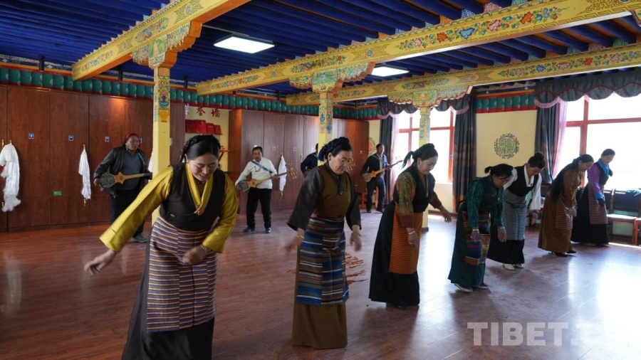 村民們自發(fā)組織歌舞排練迎接西藏百萬(wàn)農(nóng)奴解放紀(jì)念日