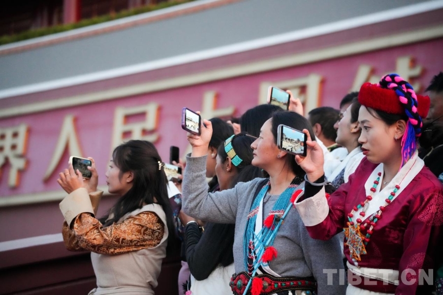 中國西藏網(wǎng)訊 3月27日,晨曦微露,天安門廣場神圣莊嚴。來自西藏山南的基層群眾代表團身著多彩民族盛裝,懷揣雪域兒女的赤誠,靜靜佇立在觀禮臺上,等待那莊嚴一刻。