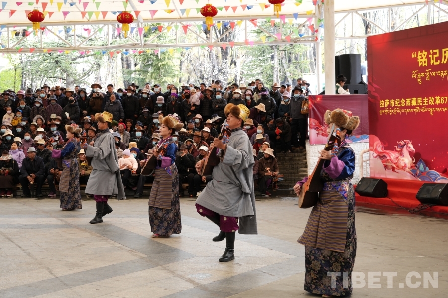3月28日,以“銘記歷史 珍惜今天 開創(chuàng)未來”為主題的紀(jì)念西藏民主改革67周年暨“3·28”西藏百萬農(nóng)奴解放紀(jì)念日群眾文藝演出活動(dòng)在拉薩舉行。演出現(xiàn)場,各族各界群眾自發(fā)前來觀看。67年前的今天,雪域高原迎來新生,百萬農(nóng)奴掙脫枷鎖,成為這片土地的主人;67年后的今天,拉薩正以昂揚(yáng)姿態(tài)奔跑在高質(zhì)量發(fā)展的康莊大道上。群眾通過藏戲、噶爾魯、扎念彈唱等豐富多彩的表演,共同紀(jì)念這個(gè)意義非凡的日子。(中國西藏網(wǎng) 實(shí)習(xí)記者/宋俊 張藝彤)