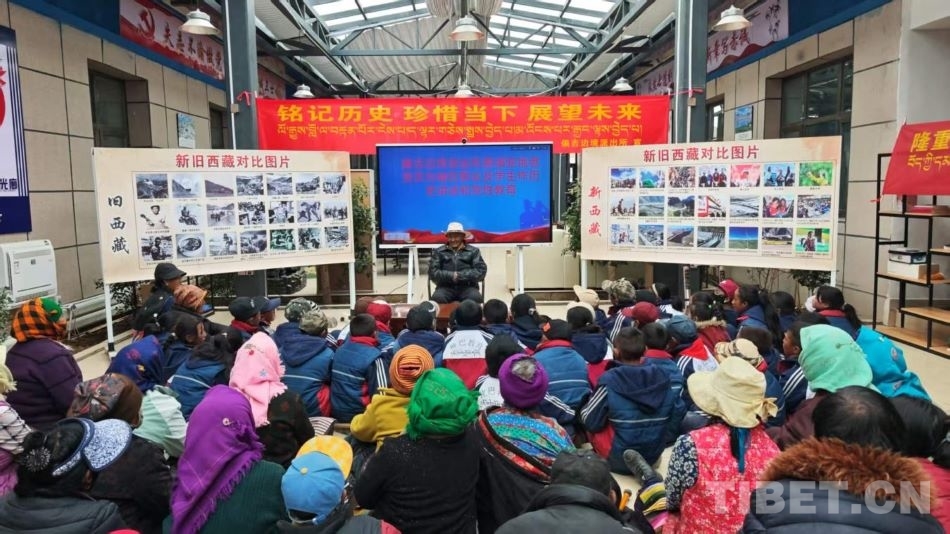 3月26日,在日喀則偏吉邊境派出所,以“銘記歷史 珍惜當(dāng)下 展望未來”為主題的系列紀(jì)念活動舉行。民輔警們圍坐在一起,中間是79歲的老黨員朗康,經(jīng)歷了民主改革的他,正以自己的親身經(jīng)歷為派出所民警們講述那段黑暗的過往。