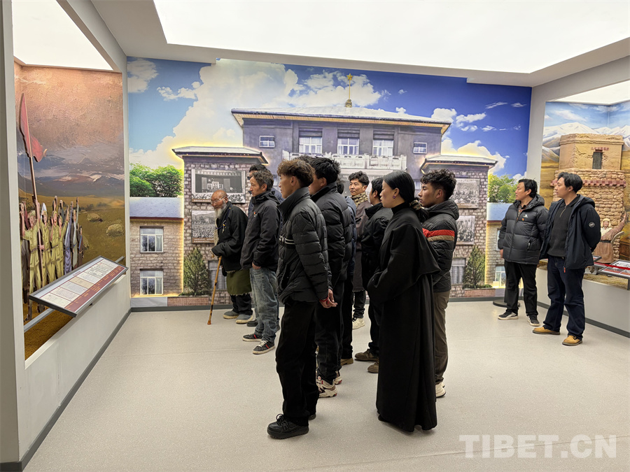 烈士陵園陳列館內(nèi)陳列著大量歷史圖片、文獻(xiàn)資料和烈士遺物。大家邊走邊看,不時(shí)停下腳步仔細(xì)端詳,互相交流感受。大家通過(guò)一件件革命文物、一幅幅泛黃的歷史圖片和一段段翔實(shí)的文字資料,全面了解了西藏和平解放以來(lái)波瀾壯闊的光輝歷程,深刻體會(huì)了無(wú)數(shù)共產(chǎn)黨人、革命先烈為西藏革命和建設(shè)事業(yè)前赴后繼、無(wú)私奉獻(xiàn)、扎根高原的崇高精神,深切感受到西藏民主改革67年來(lái)翻天覆地的歷史巨變。