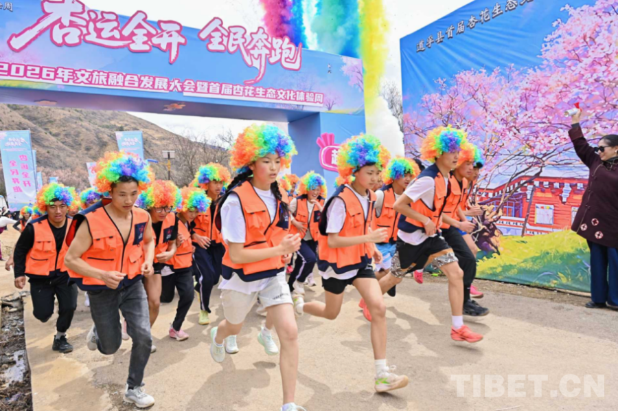 中國(guó)西藏網(wǎng)訊 4月2日,道孚縣2026年文旅融合發(fā)展大會(huì)暨首屆杏花生態(tài)文化體驗(yàn)周系列活動(dòng)——“‘杏’運(yùn)全開(kāi) 全民奔跑”活動(dòng),在四川省甘孜藏族自治州道孚縣孔色鄉(xiāng)麻灣村舉行。200多名道孚縣的群眾、學(xué)生頭戴彩色假發(fā),身穿橙色馬甲,在鄉(xiāng)間小道上步伐輕盈,盡情奔跑。