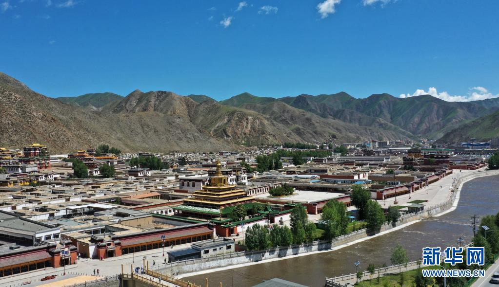 這是7月12日拍攝的拉卜楞寺建筑群(無人機照片)。新華社記者 陳斌 攝