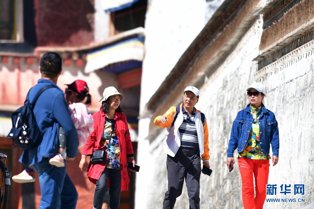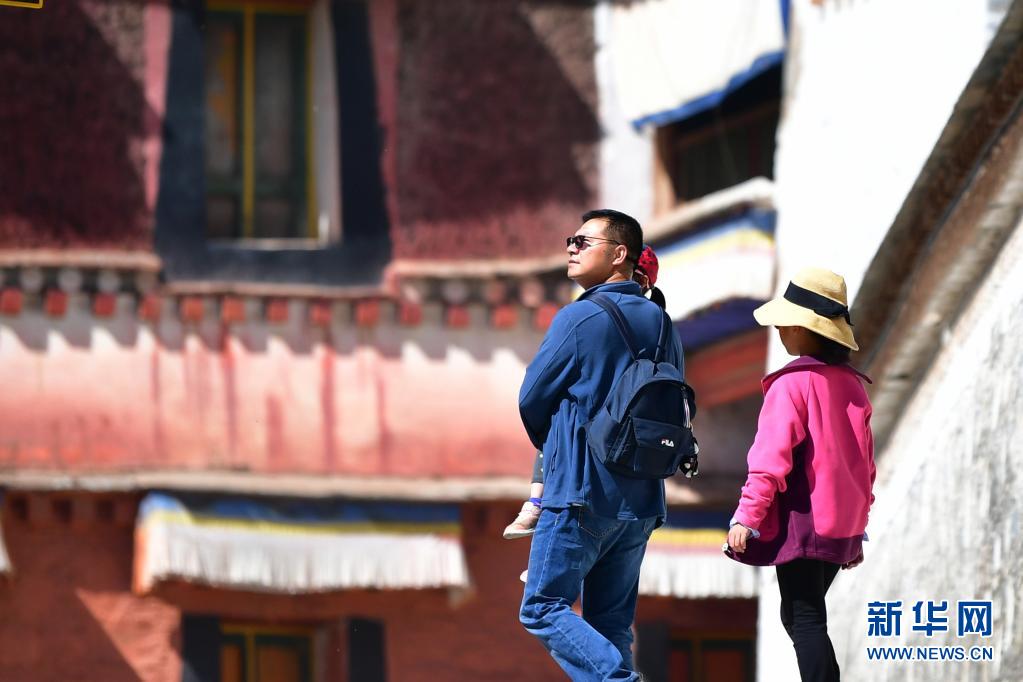 7月12日,游客在拉卜楞寺參觀。新華社記者 陳斌 攝