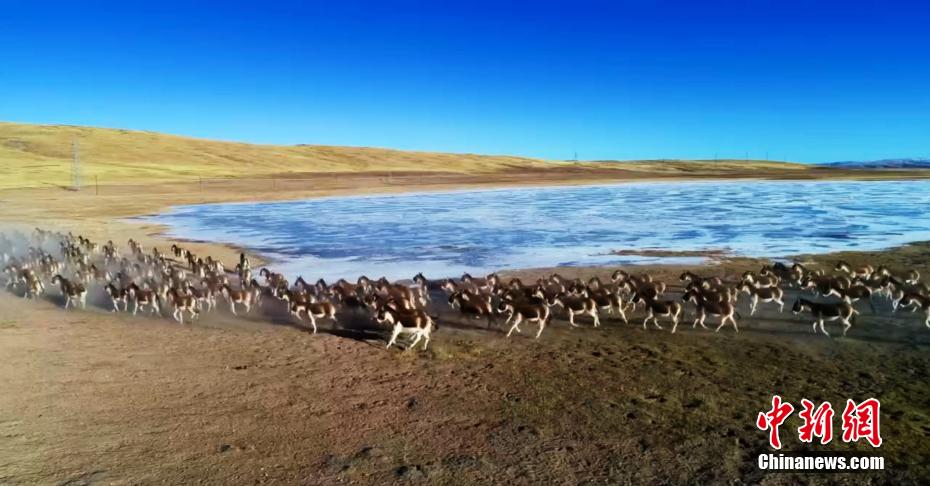 黃河源頭牧民首次近距離拍到大規(guī)模藏野驢種群