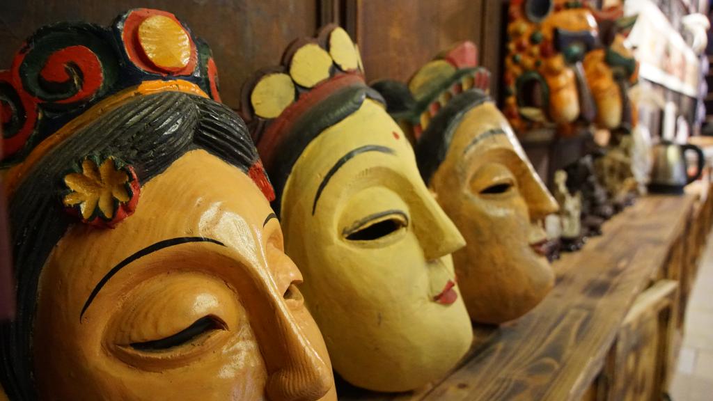 這是1月12日拍攝的白馬藏族“池哥晝”面具。新華社記者 郎兵兵 攝