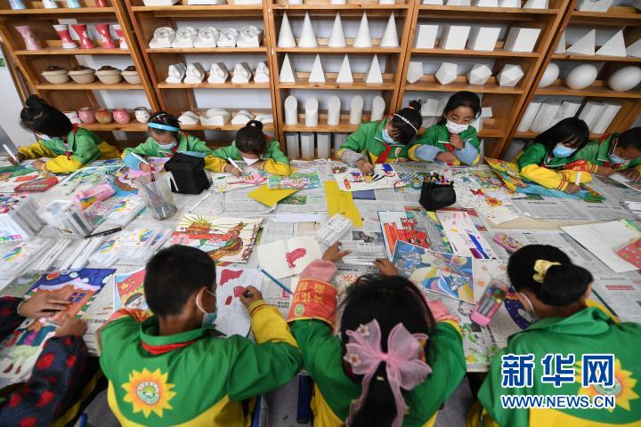 6月15日,在都蘭縣第三小學(xué),葵花繪夢社團在教室中畫畫。新華社記者 范培珅 攝