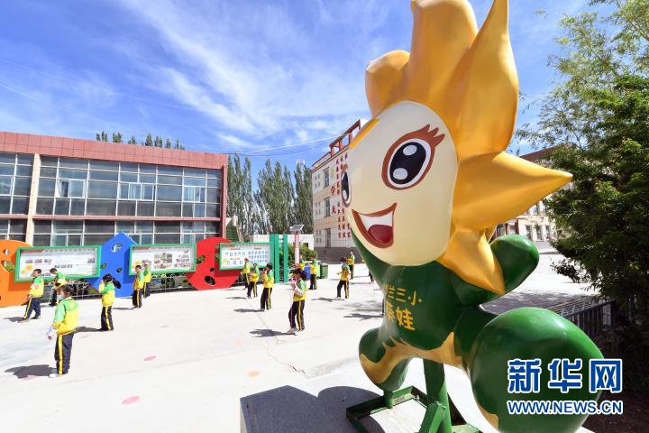 6月15日,在都蘭縣第三小學(xué),學(xué)生開展課間活動。新華社記者 范培珅 攝