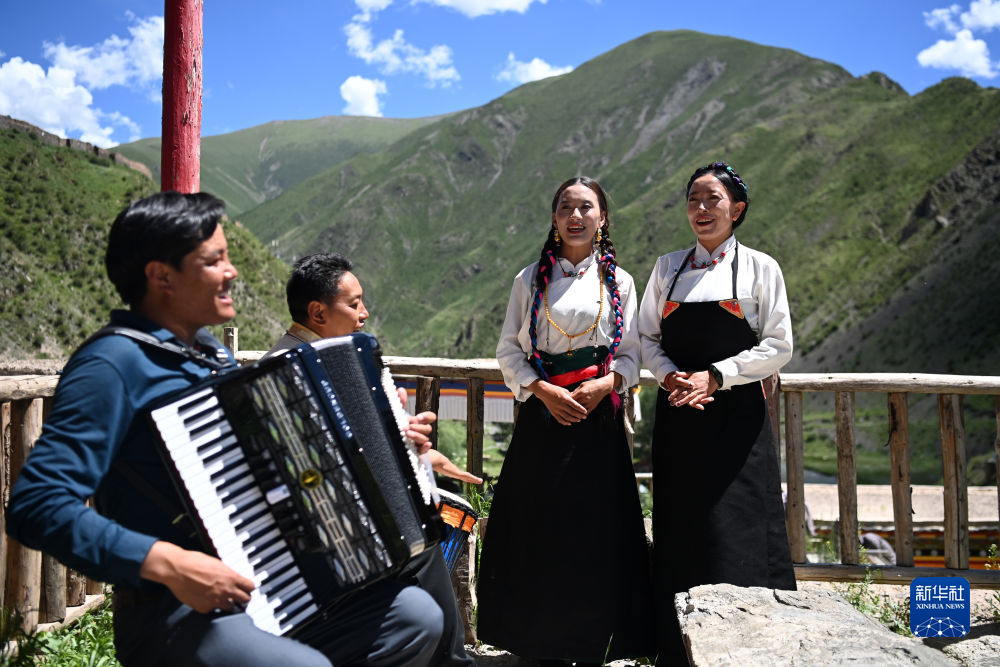 清冽的益曲河水汩汩流淌,古色古香的藏式傳統(tǒng)房屋錯落有致,夏日的結(jié)拉村山清水秀、生機盎然。