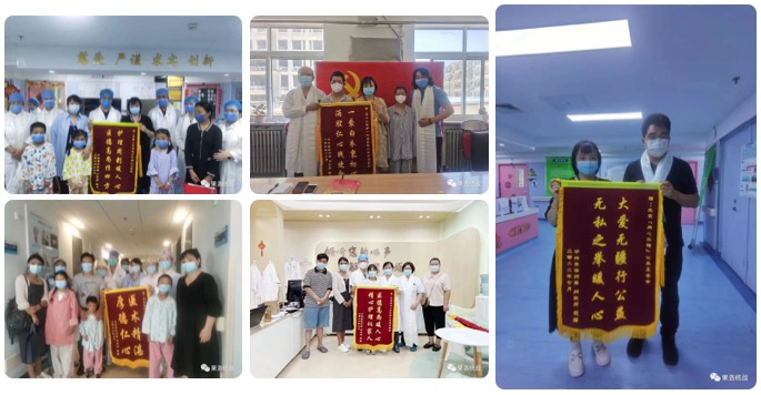 圖為患兒出院前向院方和“同心共鑄中國心”基金會(huì)敬送錦旗